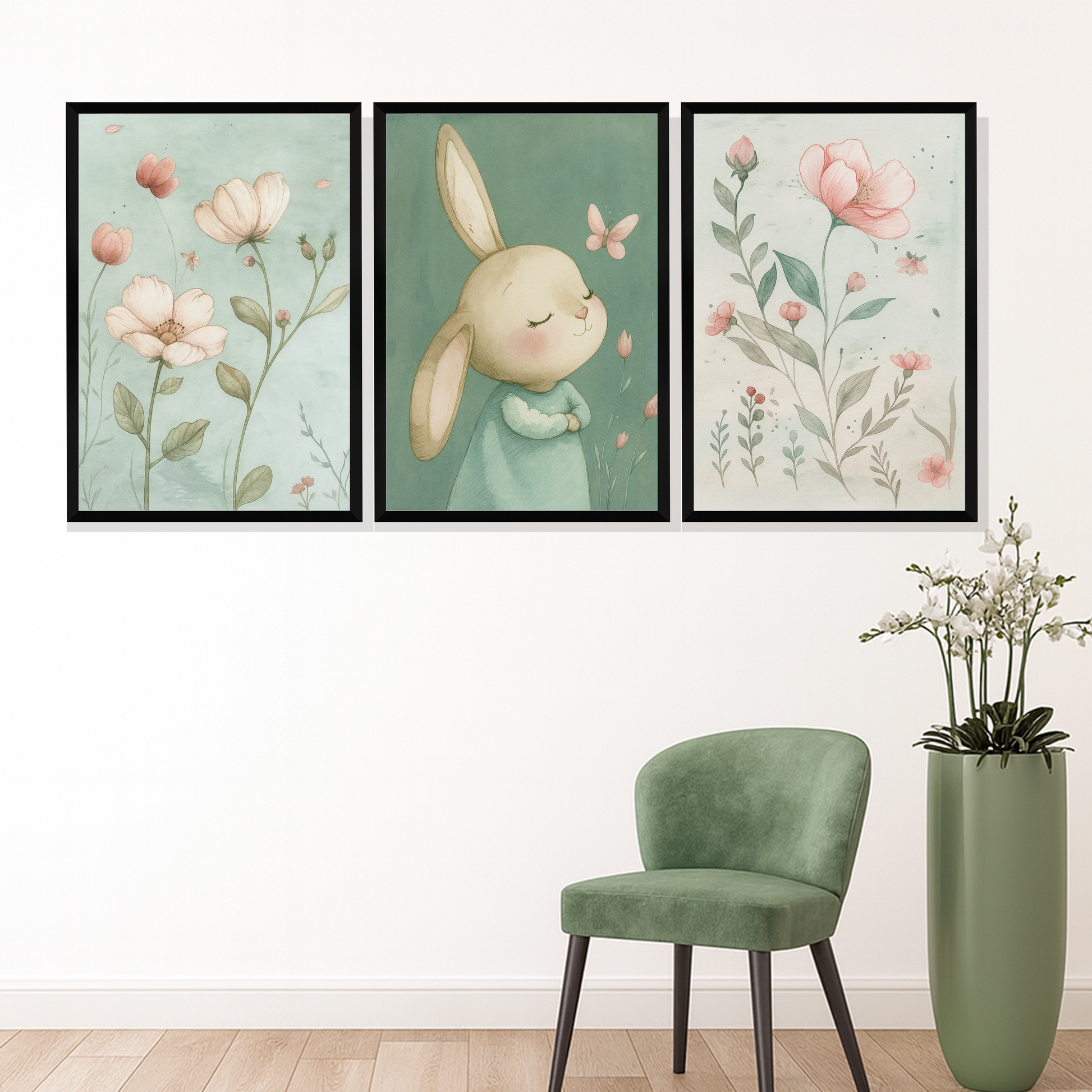 Set of 3 Frames - Whimsical Bunny Florals